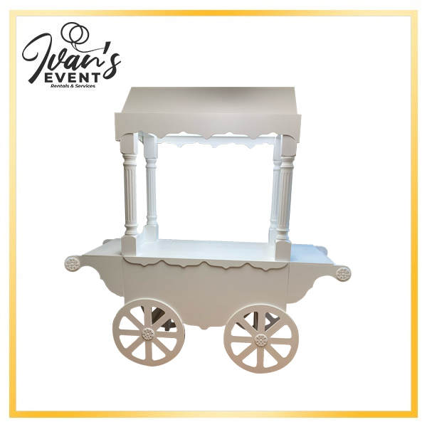 Make your dessert or treat station stand out with our Candy Cart Rental, measuring a generous 2Ft wide by 6Ft long and 6Ft tall. This classic white cart is a show-stopper, perfect for weddings, birthdays, baby showers, and corporate events.